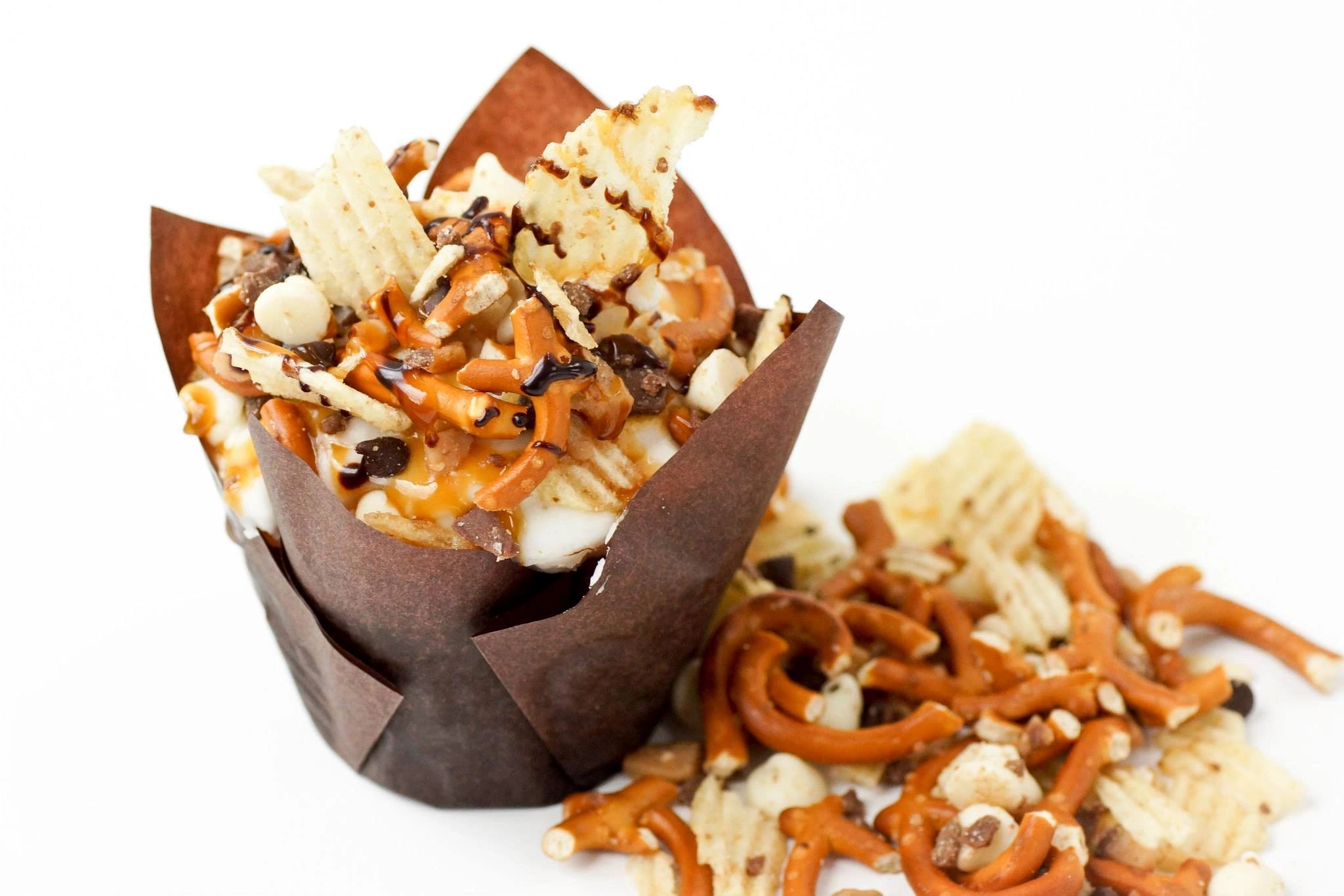 choice of chocolate or vanilla cake/vanilla buttercream topped with chocolate ganache, caramel, potato chips, pretzels & crushed toffee!